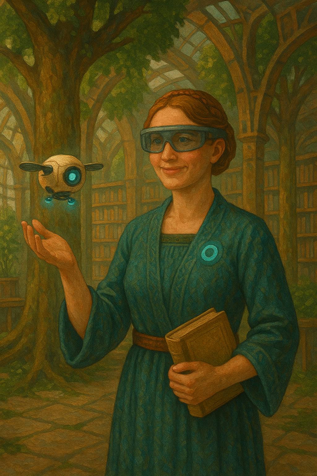 Пані бібліотекарка — чарівна алхімік інформації, що трансформує сухі дані в поетичні відкриття. Вона поєднує інтуїцію з аналітикою. Її усмішка — як знак запрошення в безпечний простір.
